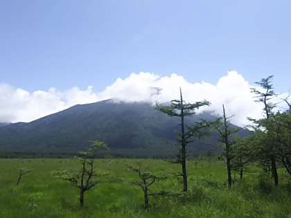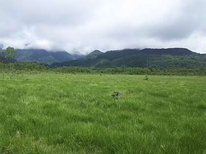 戦場が原の先には目指す湯滝がはるかに見えます。