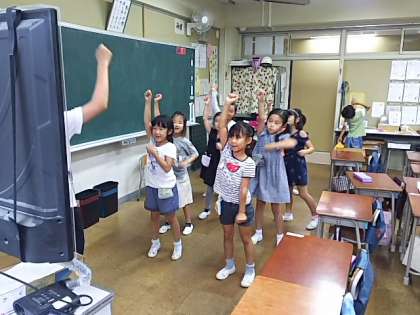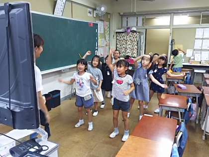 学年全体で踊る前に個別に練習して、みんなができるようになっていきます。