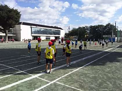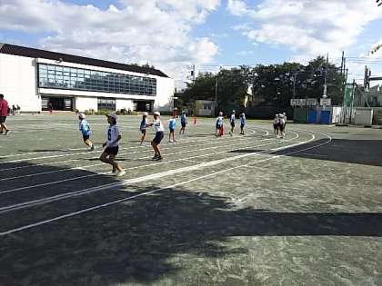 中学年のリレー選手たちが朝練習に取り組んでいます。