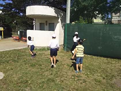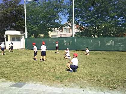 校庭東側の芝生で気持ち良さそうに子どもたちが遊んでくれています。
