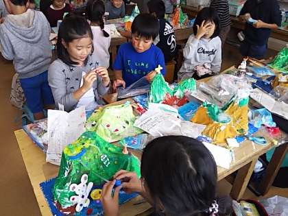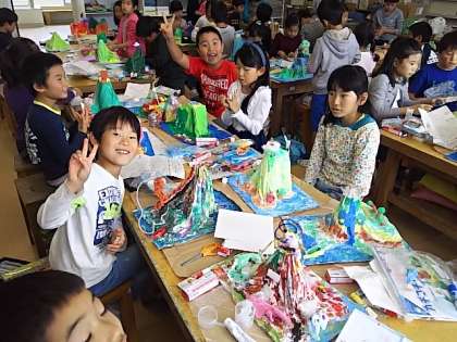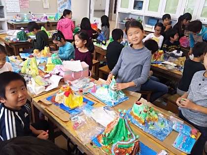 3年生が図工で素敵なアイランドを作っています。