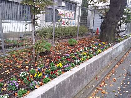 バンジー等を中心にかわいい花たちが子どもたちの登下校を見守ります。