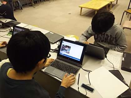 5年生が社会科の学習をプレゼンソフトを使ってまとめています。
