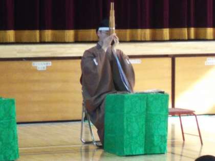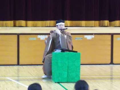 雛人形から出てきたような雅楽演奏家の方をお招きし、平安からの古式ゆかしい日本の伝統文化を触れました。