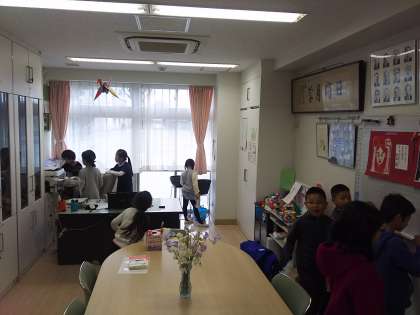 10人以上の子どもたちが入れ替り立ち替わり、校長室に遊びに来てくれています。