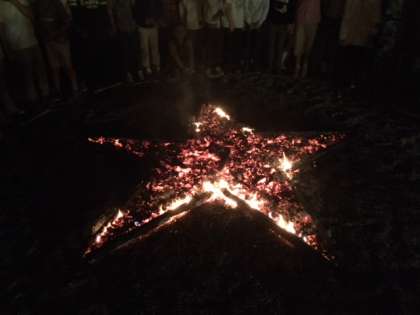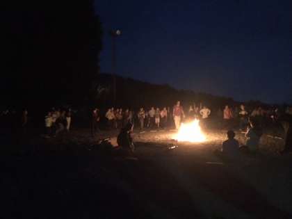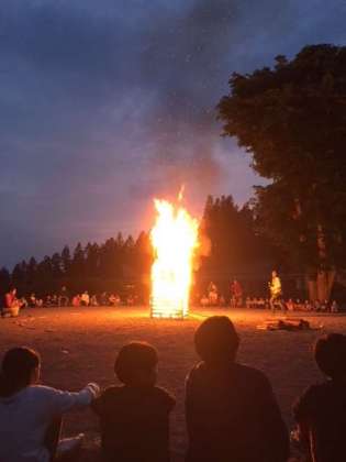 お待ちかねのキャンプファイヤーです。歌にゲーム、みんなで踊って盛り上がりました。火を囲んで、5年生みんなが一つになりました。