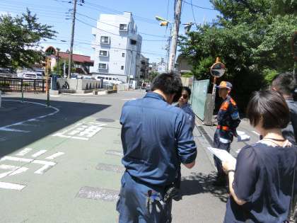 6月1日(金)に、玉川警察さん、区の土木管理課さん、PTAの校外委員さんと一緒に、合同通学路点検をしました。子どもたちが安全に登下校できるように、交差点や危険個所等を一つ一つ見て回りました。現地では白線の消えかかっているところは白線を引き直してもらえるよう要望したり、皆様からの安全対策希望箇所(標識や横断歩道等を設置してほしいところ等)を伝えて確認したりしました。