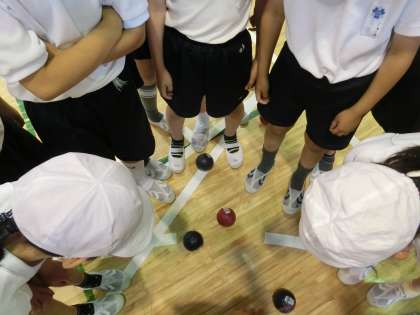 13日(水)に、オリンピック・パラリンピック教育の一環として、5年生でボッチャの体験学習を行いました。ボッチャはパラリンピック競技の一つで、2020年の東京パラリンピックでも実施されます。