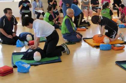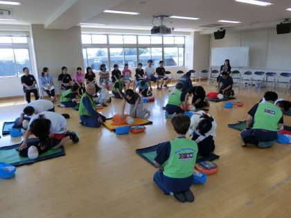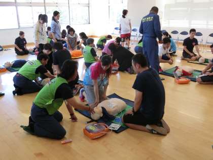 本校では来週から水泳指導が始まります。水泳指導を前に、消防署の方をお招きして救命講習会を実施しました。全教職員が参加をし、心臓マッサージ、AEDの使い方等を学びました。6月〜9月まで、安全第一で水泳指導を行っていきます。