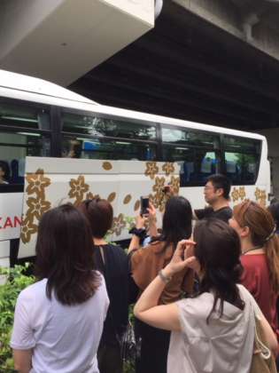 いよいよ河口湖移動教室に出発です。わかくさ学級の4〜6年生16名が参加します。出発式を行い、1〜3年生、保護者の方、先生に見送られ元気に出発しました。