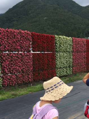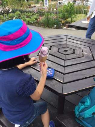 大石公園に着きました。色とりどりの花や雄大な自然に囲まれ、とても清々しいです。現地特産のアイスクリームや飲み物を食べたり飲んだりして子どもたちも気分は上々です。