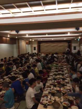 夕食の時間です。日光名産の湯葉をはじめ、魚に肉にとどれから食べようかと迷うくらいです。また、みんなで一緒に食べると格別です。ペロリと完食したり、おかわりをしたりする子も。ごちそう様でした。