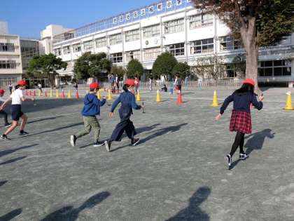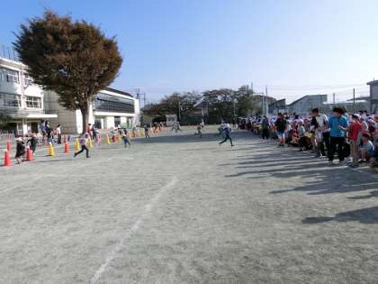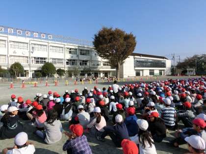 ゲームは、低学年がボール、高学年がおたまの上にピンポン玉をのせてリレーをしました。学級ごとにチームを組みましたが、どの学級もボールやおたまを駅伝の襷のようにつないでいました。友達の応援にも熱が入り、自分のチームがゴールすると大喜びでした。学級が一つになっていた温かい集会でした。