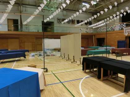 先週の金曜日に6年生が机やいす、パネル等を運び会場づくりを行いました。展覧会の形が少しずつ見えてきました。この会場に子供たちの作品が展示されると、と考えるとワクワクします。子供たちの作品でいっぱいになった会場に、ぜひお越しください。
