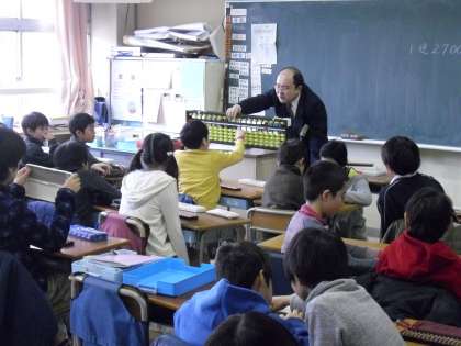 1月24日(月)、3・4年生の算数の授業で、そろばん指導がありました。