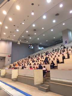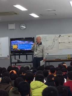 最後の見学地は、世田谷市場です。世田谷市場は、砧公園の脇にあり本校からも近く、青果と花きを扱う市場です。市場の方から世田谷市場についての話を聞いた後に、花のせりを行う場所を見学しました。花のせりは、一般的に知られている魚や野菜とは異なる方法で、決められた額が示されていて、その値段(高い値段)から値段が下がっていき最初に意思表示した人が落札します。機械を使って一緒で行われます。子供たちも実際にせりを行う場所に座ることができました。