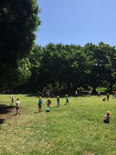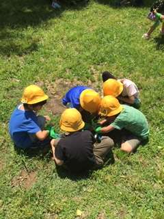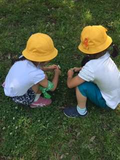 花を摘んだり、虫を探したり、子供たちはいろいろなものに目を向け、楽しみながら遊んでいます。