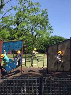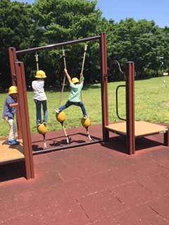 お弁当を食べた後は、アスレチック広場で遊びました。よじ登ったり、ぶら下がったり、体を目一杯使って遊びました。