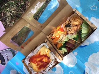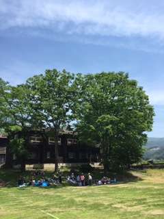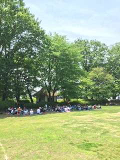 いよいよお昼です。川場村の自然の中で食べるお弁当は格別のようで、みんな笑顔でとても美味しそうです。