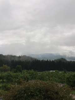 おはようございます。今朝は曇りで霧が立ち込めています。昨晩少し雨が落ちたようで、しっとりした感じです。予報ではこの後晴れていくようで、村めぐりにはちょうどよいです。