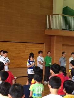 移動教室に参加する15校が一堂に会して開園式を行いました。その中で、みくさんが児童代表の言葉を述べました。15校の児童の前で立派に務めることができました。