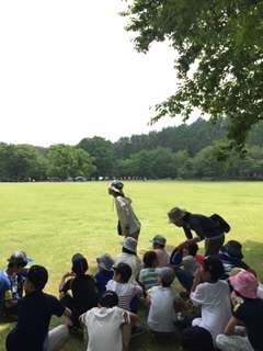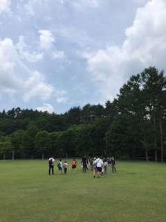 河口湖総合公園に着きました。広々として、気持ちがいいです。子供たちは、早く遊びたくてワクワクしています。