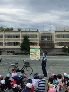 3年生が自転車教室に参加しました。はじめに玉川警察の方から、自転車を運転するにあたり大切なことを教えていただきました。その後、実際に自転車に乗って安全な自転車の乗り方について学びました。