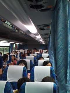 バスの中では、バスレクをしたり事前にリクエストとした曲をみんなで聴いたりして過ごしています。