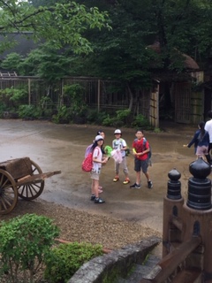 日光江戸村はグループで行動します。思い思いの場所でみんな楽しんでいます。
