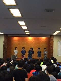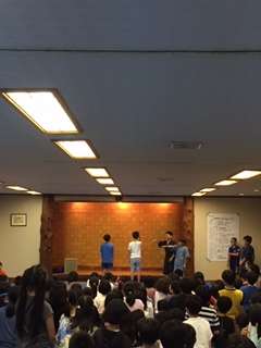 パフォーマンス大会もとても盛り上がり、子供たちの熱さを感じました。いよいよ成績発表!3位、2位、優勝がアナウンスされ、会場は湧き上がりました。どの班かとどんなパフォーマンスであったかは、後でお聞きください。お楽しみに。