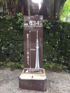 ちなみに日光東照宮の標高は、スカイツリーの高さと同じ634mです。