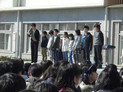 校長からは、「目標をもって頑張っていこう」「今年度は、学校が60周年なので、お祝いする気持ちをもち、学校をよくしたり、学校をもっと好きになったりしよう」という話をしました。
