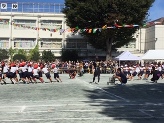 3年生の追いかけ綱引きです。力と力の迫力の勝負!