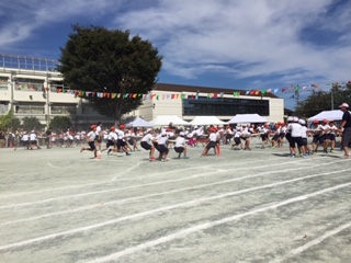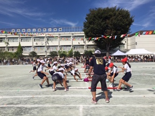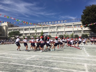 4年生による棒引きです。棒によって点数が異なります。どの棒にねらいを定めるかも作戦です。力と素早さで棒を勝ち取ります。