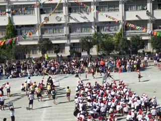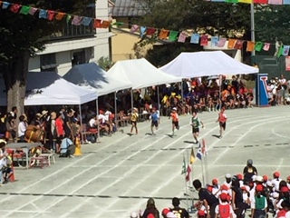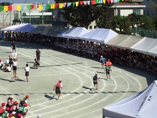 高学年になり、100mに距離が延びた短距離走。白熱した競走が繰り広げられています。