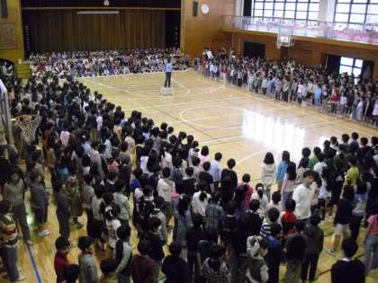 全校で、校歌も歌いました。