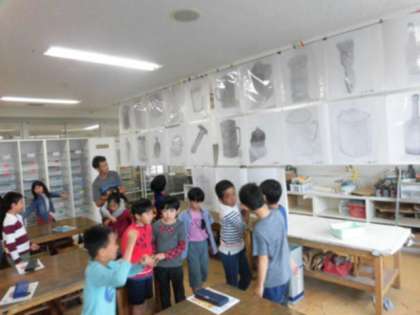 10/16(水) 3年生図工 鉛筆デッサン鑑賞