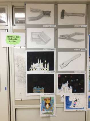 世田谷美術館で行われていた世田谷区立小学校図画工作展に出品した作品を校長室前に展示しています。
