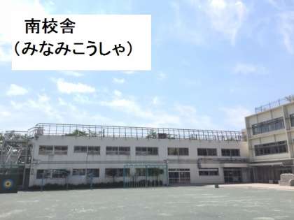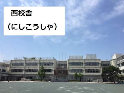 学校(がっこう)には、大(おお)きくわけて、南校舎(みなみこうしゃ)【左(ひだり)の写真(しゃしん)】、西校舎(にしこうしゃ)【まん中(なか)の写真(しゃしん)】、北校舎(きたこうしゃ)【右(みぎ)の写真(しゃしん)】の3つの校舎(こうしゃ)があります。この3つはちがう時期(じき)にできました。
