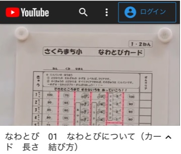 また、動画(どうが)の配信(はいしん)「さくらまちゃんねる」で、5月1日になわとびのとび方(かた)を紹介(しょうかい)しています。おうちの人(ひと)にメールでパスワードをお知(し)らせしていますので、ぜひみてください。【ホームページから見られます】なわの使(つか)い方(かた)からあや二重跳(にじゅうと)びというむずかしい技(わざ)も紹介(しょうかい)しています。