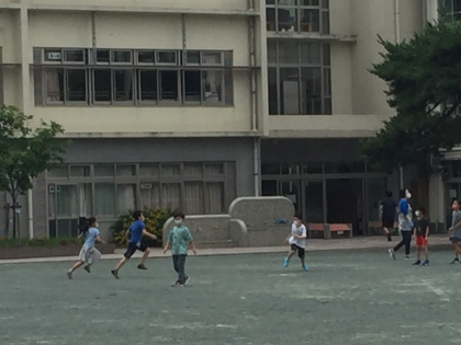 中休みの時間です。子供たちは楽しそうに走り回っています。