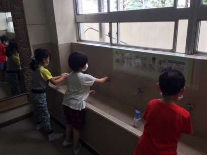 遊具やボール等は使わないこと、友達との距離を保つことなど、いろいろ気を付けながら遊んでいます。