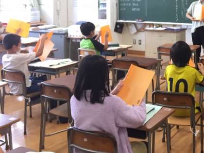 各学級、学級の半分の子供たちの登校なので、いつもに比べて教室が広く感じました。授業中は、どの学級の子供たちも真剣に取り組む姿が見られました。