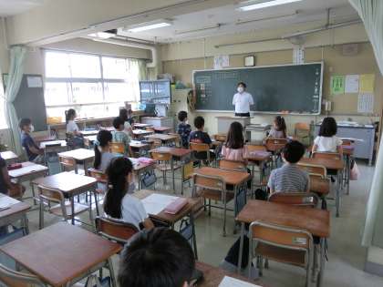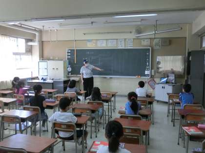 いよいよ教室での1学期のスタートです。どの子もちょっと緊張しているところが見受けられます。ピシッと背筋を伸ばして話を聞いる姿はいいものです。