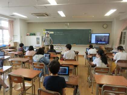 中休み後、子供たちは気持ちをうまく切り替えて授業に集中していました。6年生の教室に行くとタブレットを使って学習をしていました。写真や動画を活用した学習sの仕方について学んでいました。他の学級でも実物投影機やパソコン等のICTを活用して授業をしていました。