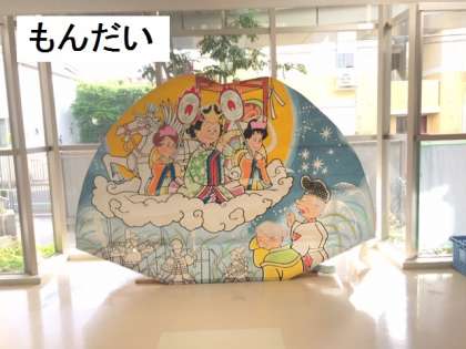 学校(がっこう)にかざってあるねぶたは、一昨年(いっさくねん)の桜新町商店街(さくらしんまちしょうてんがい)のねぶた祭(まつ)りで使用(しよう)したものです。