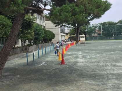 午後の部4〜6年生の2・4組Bとわかくさの6年生が登校してきました。友達や先生と手を振り合って喜ぶ姿が見られました。
