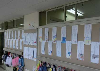 2年生は教室前の廊下に、教科「日本語」の学習で作った俳句の作品を掲示しています。句を読むと、一人一人が思い思いの夏を表現していて、その情景が浮かんできます。