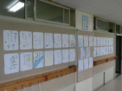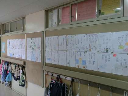 4年生は教室前の廊下に、国語の学習で作った俳句の作品を掲示しています。季語を意識して、表現やリズムの工夫があり、読んでいて心地よさを感じます。