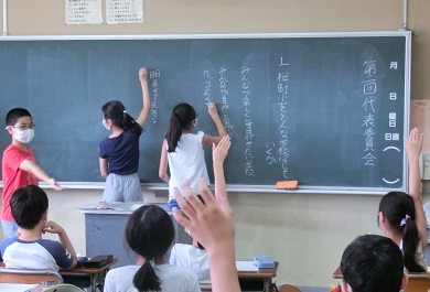 委員会活動の時間に各委員会をまわってみると、どの委員会も活発に話し合いをしていました。代表委員会は、桜町小学校をどのような学校にしていくかの話し合いをしていました。自分たちの学校を自分たちでよりよくしていく。今年度の委員会活動のテーマでもあります。自主的、自治的な活動を行い、子供たちで素敵な桜町小学校を創り上げていってほしいと思います。